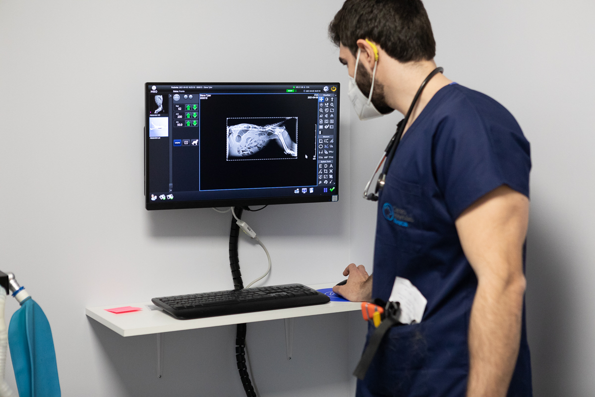 A radiografia veterinária é um exame de imagem que utiliza radiação ionizante para produzir imagens dos órgãos, ossos e tecidos do animal. É uma ferramenta de diagnóstico amplamente utilizada para detectar fraturas, lesões ósseas, obstruções, tumores, entre outras condições.